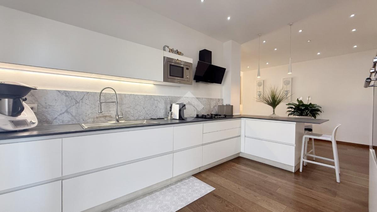 Questa proprietà offre un'ampia metratura suddivisa in quattro locali, ideale per chi cerca spazi ben distribuiti con una concezione moderna. L'ingresso è nell'ampia zona giorno open space dotata di due balconi e composta da una cucina a vista ed una spaziosa zona living. Tramite disimpegno si accede alla zona notte dove troviamo due camere matrimoniali di cui una dotata di balcone e bagno finestrato con box doccia.