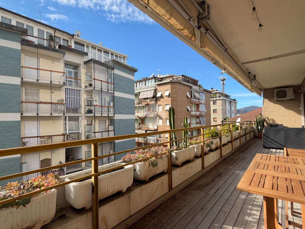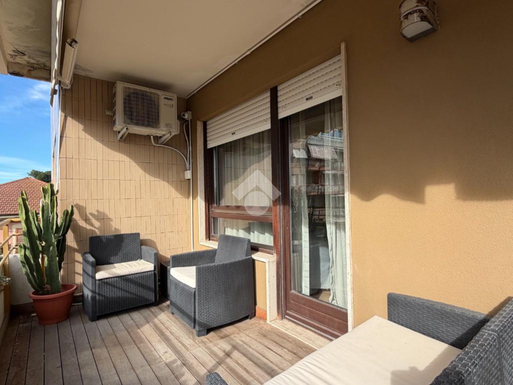 Uno dei punti di forza di questo appartamento è l'ampio terrazzo coperto, accessibile da tutte le stanze. Qui è possibile passare momenti di convivialità e relax con famiglia e amici durante tutto l'arco della giornata e tutto il periodo annuale vista l'esposizione verso sud che garantisce sempre grande luminosità.