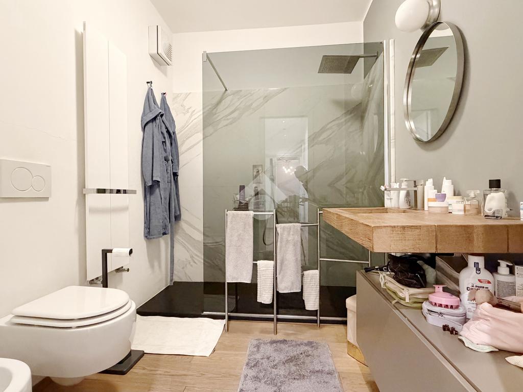L'immobile, costruito nel 1981 e ristrutturato pochi anni fa si presenta in ottimo stato con rifiniture di alta qualitĂ . All'interno dell'appartamento troviamo pavimentazione in parquet di pregio cosĂŹ come sulla terrazza esterna anch'essa pavimentata; le porte sono di design cosĂŹ come i termoarredi e le porte scorrevoli in vetro che dividono la zona giorno dalla zona notte.