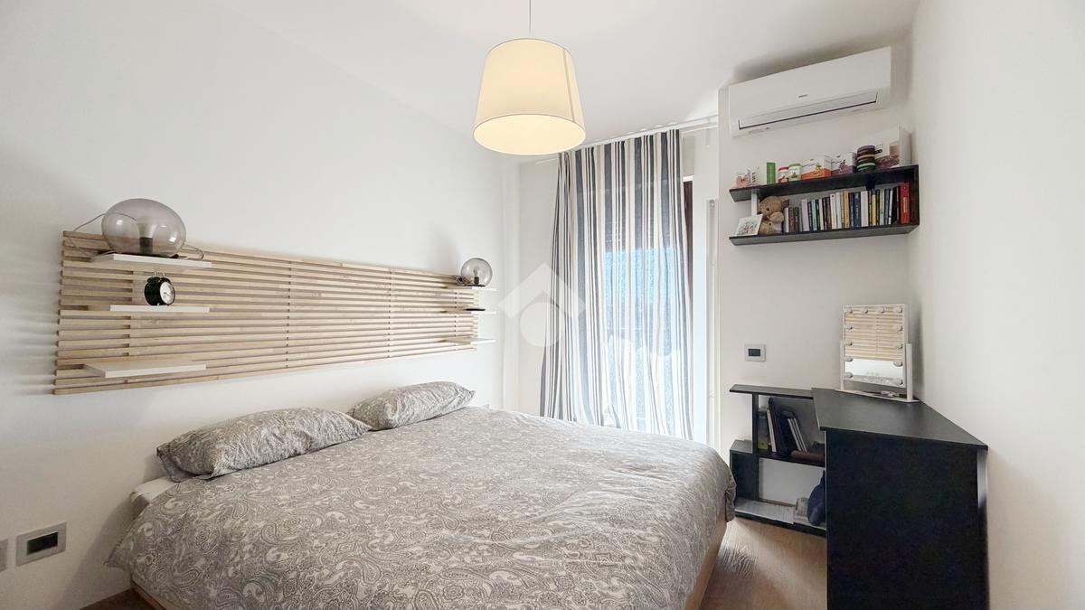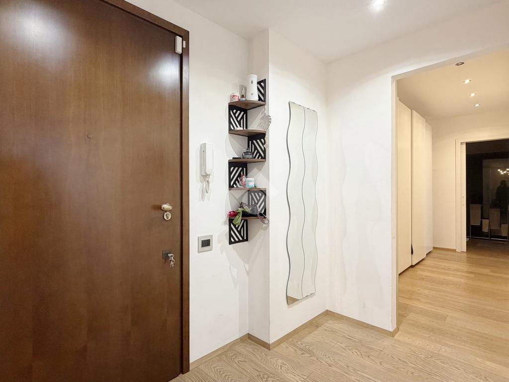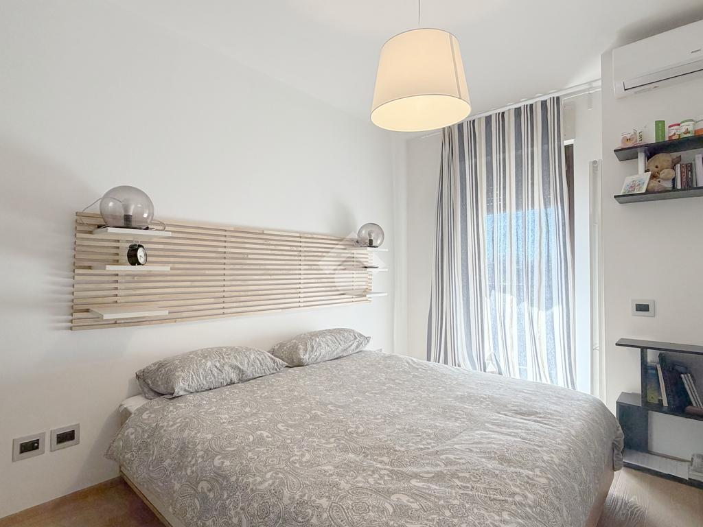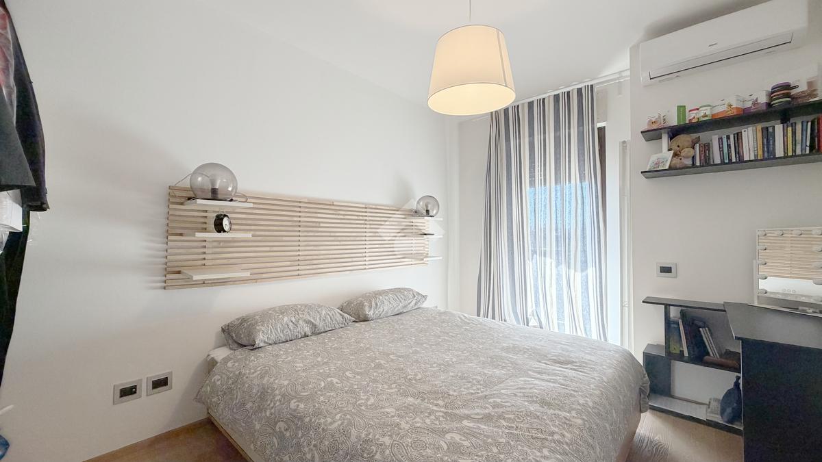 La disposizione è funzionale e moderna con l'ingresso che si apre nella zona giorno composta da una cucina abitabile e un ampio salotto. La zona notte offre due camere matrimoniali e un bagno con ampia doccia walk-in.