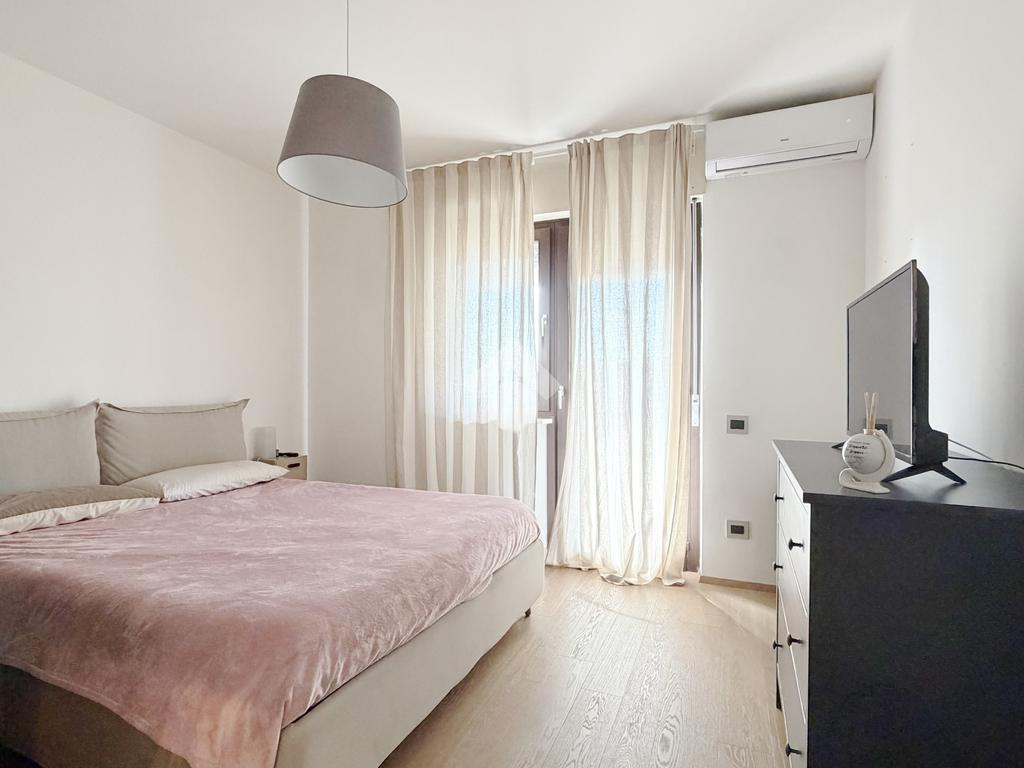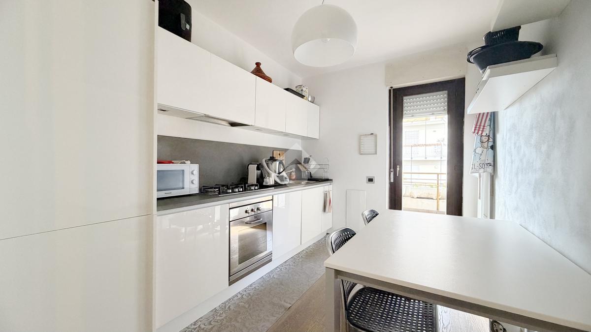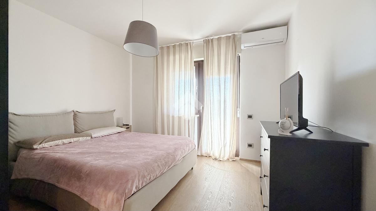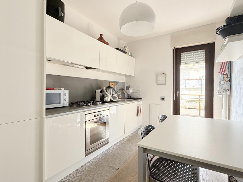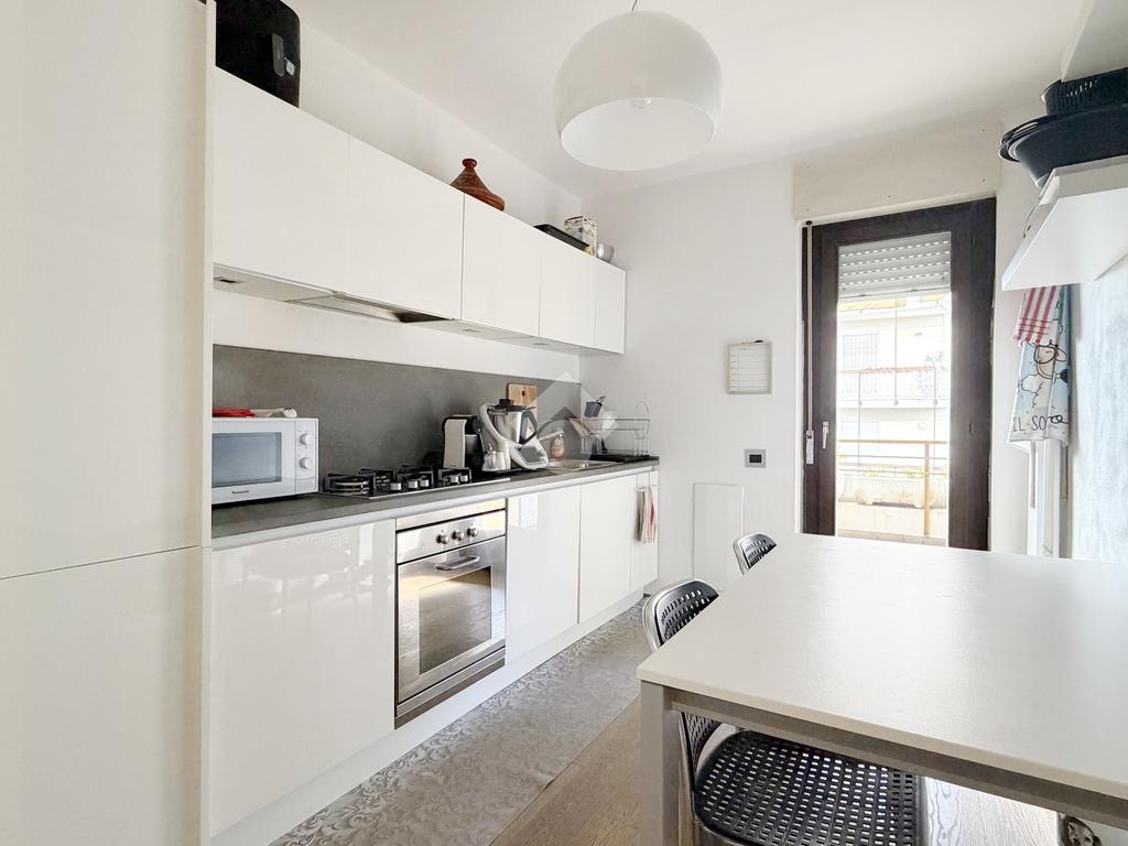 La disposizione è funzionale e moderna con l'ingresso che si apre nella zona giorno composta da una cucina abitabile e un ampio salotto. La zona notte offre due camere matrimoniali e un bagno con ampia doccia walk-in.